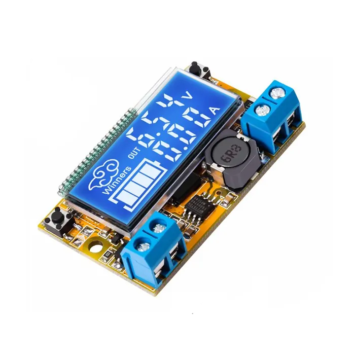 ماژول کاهنده ولتاژ HW-601 یک مبدل DC-DC یه کاهنده سوئیچینگ باک (Buck) کارآمد با قابلیت تنظیم دقیق ولتاژ خروجی و نمایش همزمان ولتاژ و جریان روی نمایشگر LCD باکیفیت است. این ماژول برای پروژههای الکترونیکی، آزمایشگاهها، سیستمهای تغذیه و مدارهای قدرت بسیار مناسب بوده و به دلیل طراحی پیشرفته و مصرف بهینه انرژی، راندمان بالایی را ارائه میدهد. نمایشگر این ماژول از فناوری LCD مایع STN بهره میبرد که با پسزمینه آبی و کاراکترهای سفید، خوانایی بالا و زاویه دید وسیع را فراهم میکند. کنترل ولتاژ خروجی نیز از طریق دو دکمه فیزیکی تعبیه شده روی برد انجام میشود که امکان افزایش یا کاهش مقدار ولتاژ را بهسادگی در اختیار کاربر قرار میدهد. این ماژول دارای حافظه داخلی است که مقدار آخرین ولتاژ تنظیمشده را ذخیره کرده و پس از خاموش و روشن شدن مجدد، همان مقدار را ارائه میدهد. همچنین، قابلیت کالیبراسیون دستی برای تنظیم دقیقتر ولتاژ خروجی وجود دارد که با یک مولتیمتر قابل انجام است.