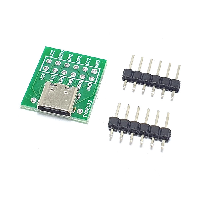 این برد یک برد تبدیل یا آداپتر کانکتور USB Type C به DIP است که قابلیت دسترسی به پین های USB Type C را فراهم میکند . از این برد در پروژه های مختلف میتوان استفاده نمود . در این برد تمام پین های USB Type C در دسترس قرار دارند .
